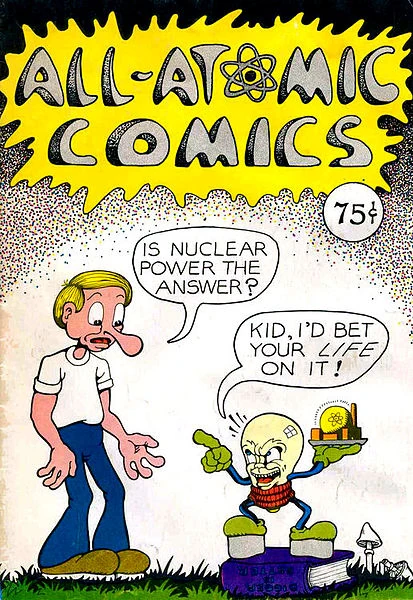 Most Americans at the time could identify with the teenage boy in the cartoon. The boy is wearing jeans and a plain white t-shirt and slouches in an unconfident stance. Like the boy in the comic, people questioned whether nuclear energy was worth the risk. Comics, like All-Atomic Comics, and other forms of media tried to bring the potential hazards of nuclear power plants to light. Although most people did not understand the complexities of nuclear power, they were able to recognize the danger of atomic energy through the mention of death in Rifas’ comic. The fear created by the fire at Brown’s Ferry and emphasized by comics like Rifas’ turned the majority of the American public against the commercial use of nuclear power in the late 1970s.